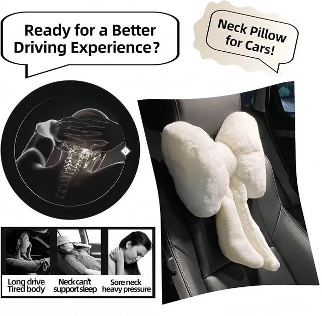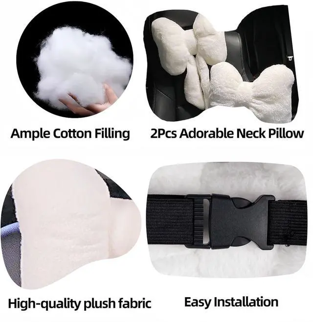 Appealing DesignAdorned with a fluffy butterfly knot, this headrest exudes a cute, girly charm, adding an elegant and adorable touch to your car' s interior.