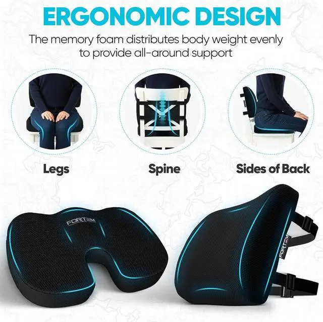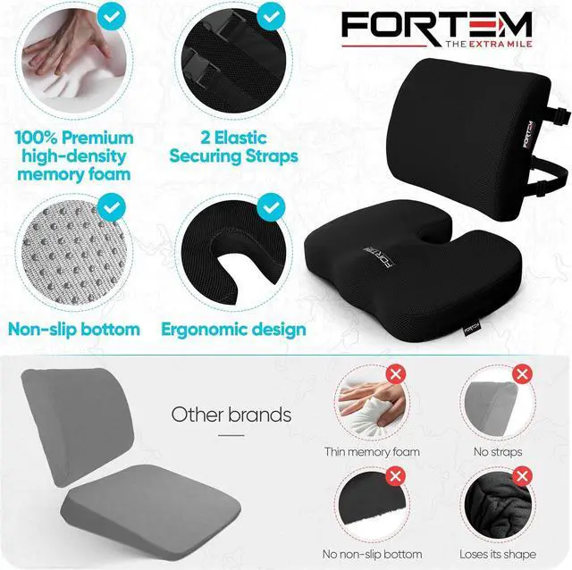 Best Orthopedic Pillow FORTEM chair cushion has an ergonomic " U" Shaped Cutout. This sitting pad is highly recommended by orthopedic experts as it alleviates pressure on the sciatica nerve to reduce back, leg, and butt pain. Enjoy it as an office chair cushion or as a car pillow.