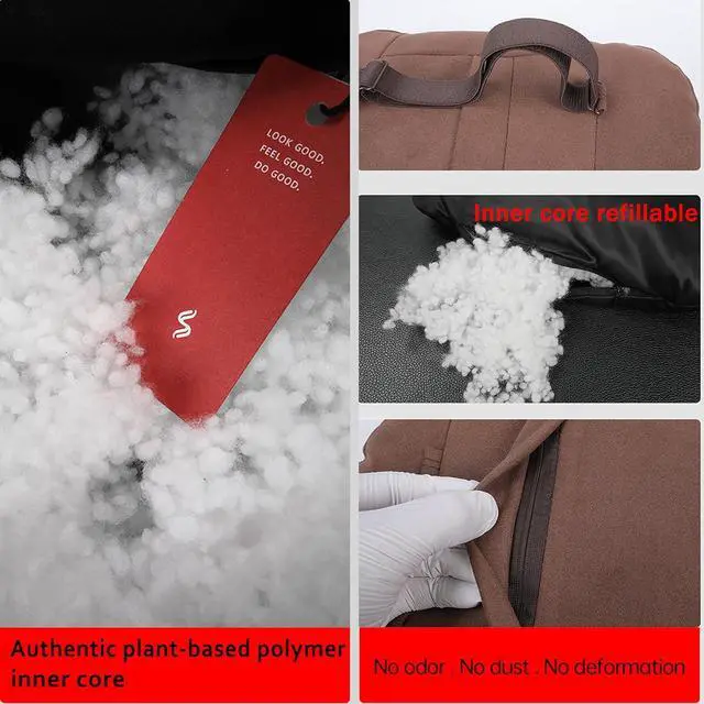 Plant-based polyester inner core, crafted from a bio-based material called PTT (polytrimethylene terephthalate), represents a novel fiber material that meets dual demands for environmental sustainability and performance. Enhanced with padding for adjustable comfort; Suede can be hand washed and reused after drying to maintain cleanliness.