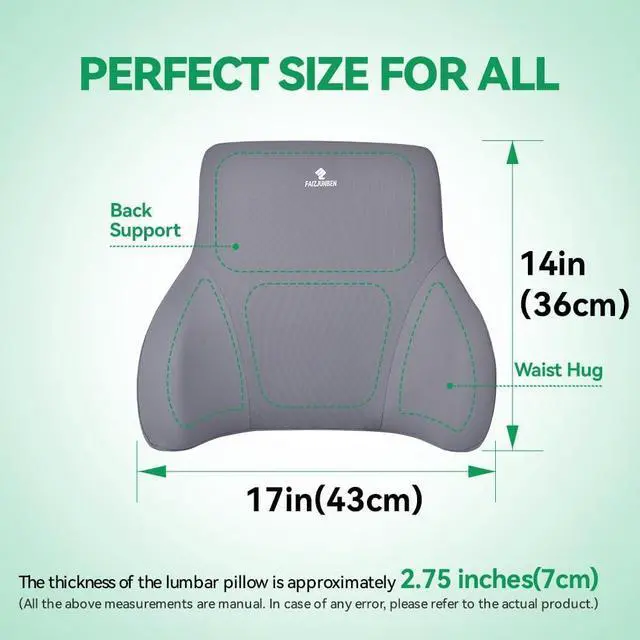 JUST THE RIGHT SIZE: We have carefully designed the size of this lumbar cushion to ensure that it fits perfectly in most chairs while still providing enough support for your lower back. Find the most comfortable fit regardless of your body type.