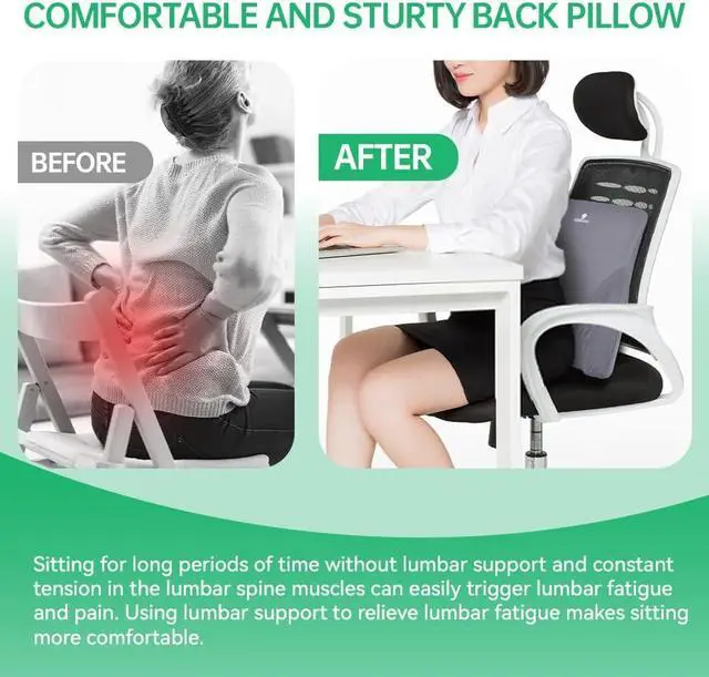 EFFECTIVE RELIEF OF LUMBAR PAIN: Through the unique properties of the memory foam material, the lumbar support is able to provide different pressure distributions for different parts of the lumbar region, effectively reducing lumbar fatigue and pain. Sitting for a long time no longer becomes a burden, making your life more comfortable.