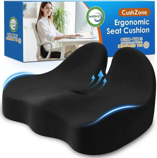 Advanced Appearance Design: With its larger size and extended tailbone support design, the CushZone seat cushion is ergonomically designed to accommodate many different body shapes, allowing you to sit more upright and reduce the stress of sitting for more than 8 hours