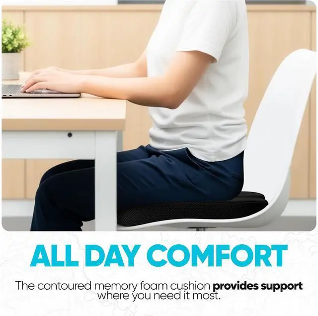 Reliable Orthopedic Pillow This office chair cushion, car pillow contours to your body to promote a healthy body posture while sitting. The memory foam bounces back after every use making this seat cushion your best companion while driving or working for extended periods.