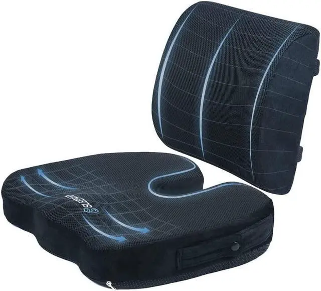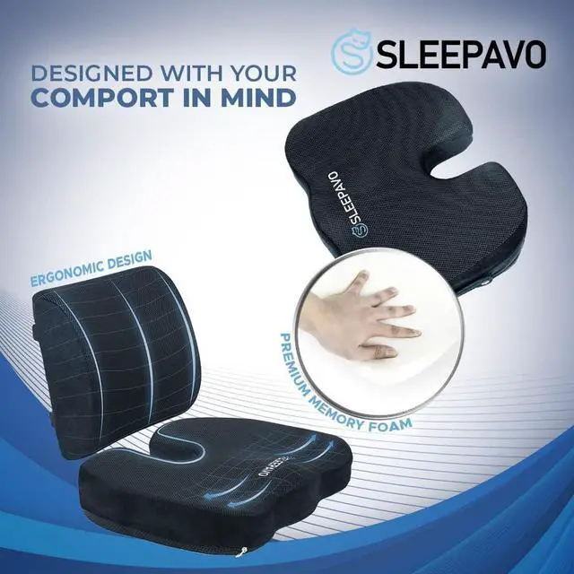 Help alleviate lower back pain and discomfort: Proper lumbar support can ease chronic back pain caused by sitting for long periods of time while at work or driving. Sleepavo' s backrest and seat cushions help promote healthy posture which in turn takes pressure off of the lower back and promotes proper spinal alignment.