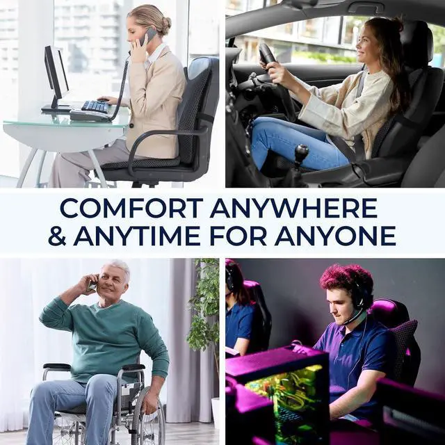 Best Gift for Men & Women: The memory foam seat cushion and chair back cushion is the perfect gift for family and friends for Christmas, Valentine' s Day, Mother' s Day, Father' s Day, Birthday, Wedding, Housewarming. If your loved one needs to sit for long hours at work or drive, give them this cushion set to experience unprecedented comfort and all-day relaxation.