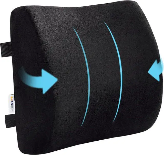 SAIREIDER Comfortable Lumbar Support Pillow for Office Chair, Memory Foam Back Support Pillows for CarGaming Chair Home Chair, Back Pain Relief Improve Posture, Double Adjustable Straps(Black)