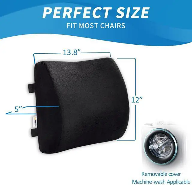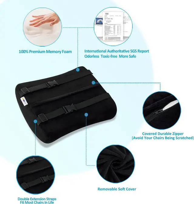 • Thoughtful Designs Our lumbar support pillow for chair has dual adjustable and elastic straps for secure placement on a variety of chairs.Soft and removable cover which keeps your back cushion always clean. Hidden zipper protects your chair from being scratc