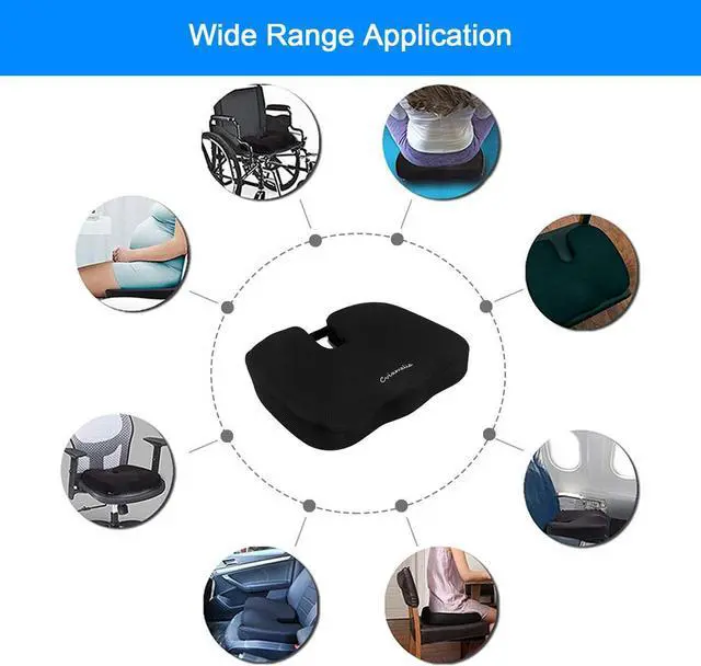 [Seat Cushion for Tailbone Pain Relief]-Made of pure memory foam with no additives. If you suffer tailbone, coccyx or back pain after sitting, try to relieve the pain by using this supportive seat cushion. It can be used to improve bad posture and provide superior support by hugging your figure while driving or sitting for long time.