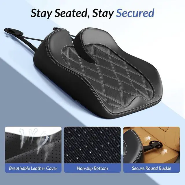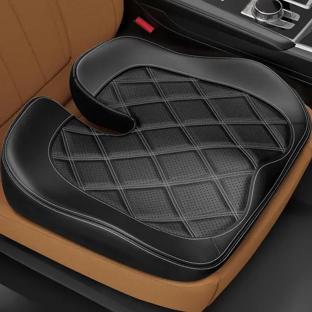 Transform Any Chair into Your Throne: Measuring 18.8 " x 16.0 " x 4.4 ", this car seat pillow is suitable for most vehicles like cars, SUVs, vans, trucks and more. Take this leather auto seat cushion and let it add a elegant touch and driving comforts to every drive