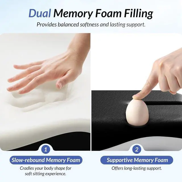 Dual-Density Memory Foam for Softness and Support: Made of dual-density memory foam, this memory foam seat cushion combines softness and lasting support. The upper layer is made of slow-rebound memory foam which molds to your body shape for soft and comfortable sitting experience, while the lower-layer adopts high-rebound memory foam for reliable and lasting support during long drives. Recommended for individuals between 4' 11" and 5' 11" in height and weighing under 200 lbs (support performance may vary outside this range)