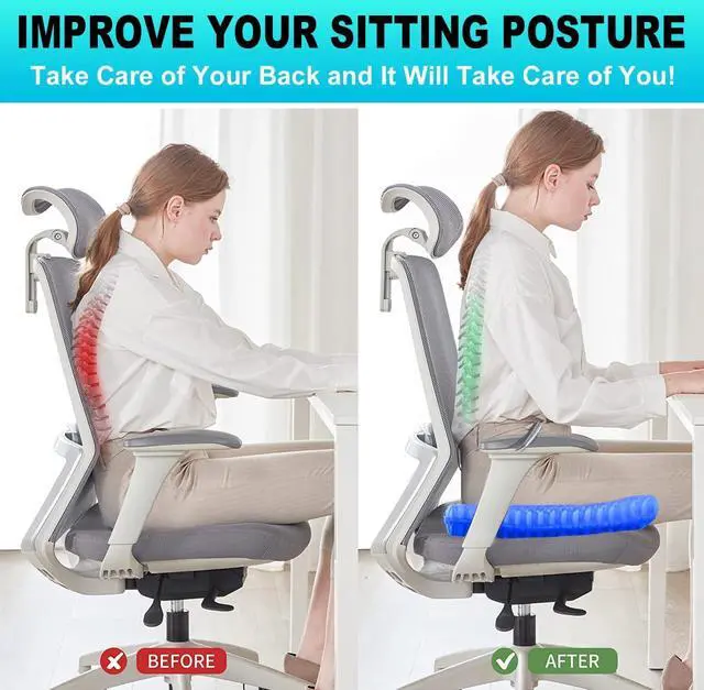 Relieve Pressure & PainThis gel chair cushion perfectly fits curve of hip, soft and without losing support force. Effectively relieves back pain, low back pain, sciatica, pressure sores, post-operative injuries or pregnancy pain and other issues caused by sitting for long periods of time.