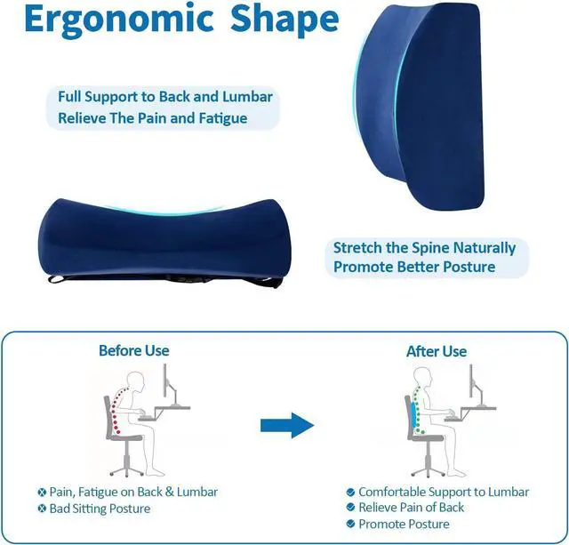 Outstanding ProductOur lumbar support pillow is anatomically shaped to contour to the natural curve of your spine, giving you more support than ordinary back cushions. What' s more, It supports the upper, middle, and lower back to effectively relieves back pain and fatigue after long sitting hours. If you spend a lot of time sitting on office chair, gaming chair or driving in car, this lumbar pillow will perfectly help you.