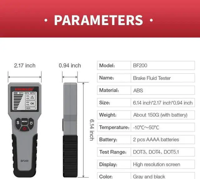 Support multiple types of brake fluid in one tool. It can be used to detect the brake oil DOT3, DOT4, DOT5.1, and the user can use it according to his own testing needs.