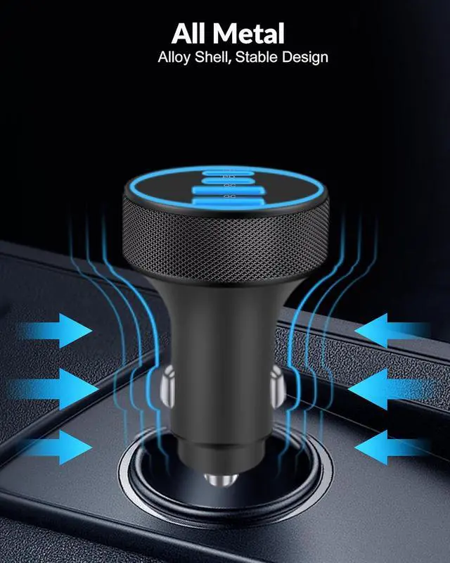 [4 in 1] 4-Port Car Charger: Car phone charger supporting PD 45W(Max) and QC 45W(Max) high output, can fast charge all prevailing cell phones and E-devices. This cigarette lighter adapter features 4-ports (2 USB-C and 2 USB-A ports) allows charging 4 devices simultaneously