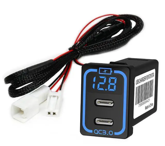 Car Socket 2Ports Car Charger Type-c 2PD Quick Charger with Voltage Led Display Dual PORT Phone DVR MP3 Adapter for Toyota
