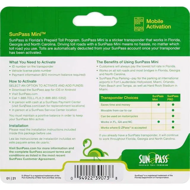 Transponder, Prepaid Toll Program for Florida, Georgia and North Carolina (Sticker)