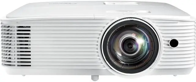 The projector powers on when it receives a signal through the HDMI input. This ensures the projector is turned on at the same time as the source device.