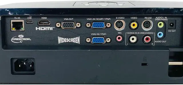 • Connectivity: HDMI Standard, USB, VGA/SVGA D-Sub, 12-Volt Trigger, Composite: RCA, Network: RJ-45, LAN, RS232: DB-9pin, S-Video, VGA In: Dsub-15pin x 2