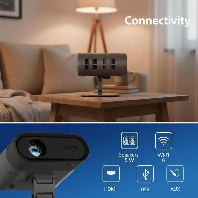 With its innovative 180-degree rotating mount, it allows for effortless projection onto virtually any flat surface.