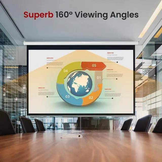 MATTE WHITE SURFACE: The matte white fabric & black border frame of the video screen pull-down hanging projector screen creates impeccable color balance to project a realistic picture & deliver ultra-wide off-axis viewing making every seat the best one