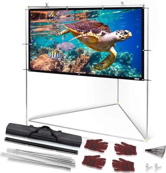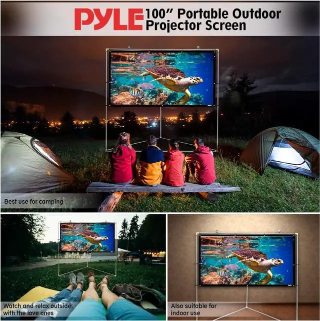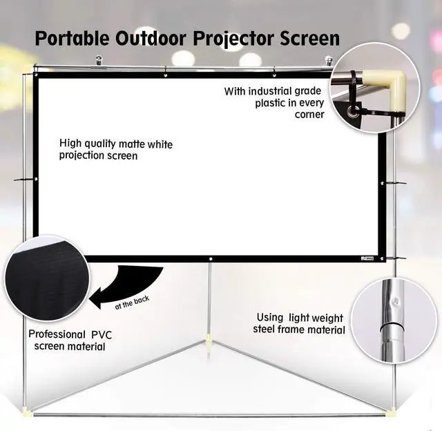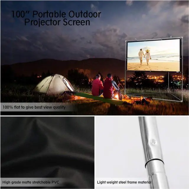 100" PROJECTION SCREEN: This professional 100 - inch 1.15 Gain big Projector Screen provides you with a wide viewing area and is specially designed for outdoor use making this product ideal for backyard party / camping w/ movie theater or live sports streaming