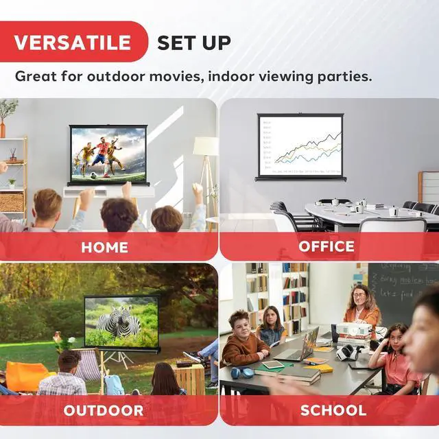 Versatile 4x3 Projection: This portable projector screen is designed for outdoor adventures and tabletop presentations. It may be 4x3, but users found creative ways to enjoy a decent 16x9 display size
