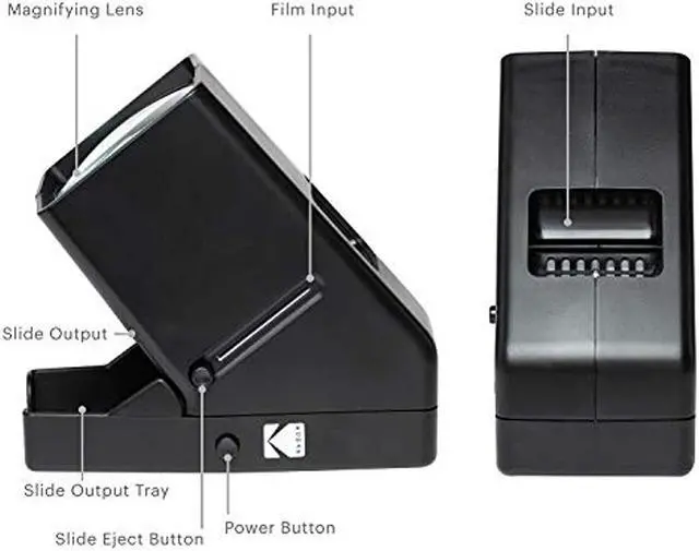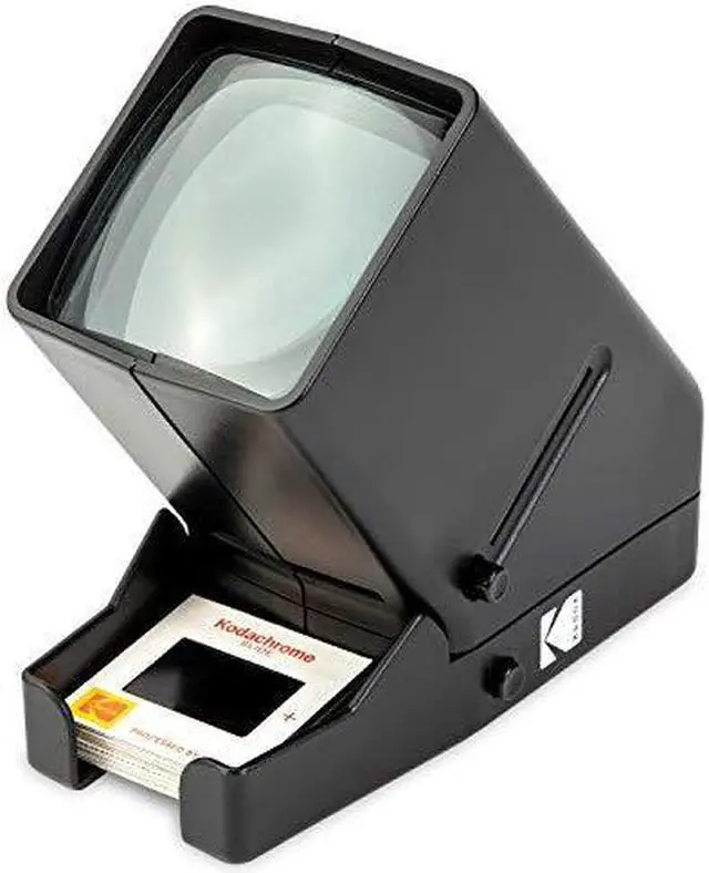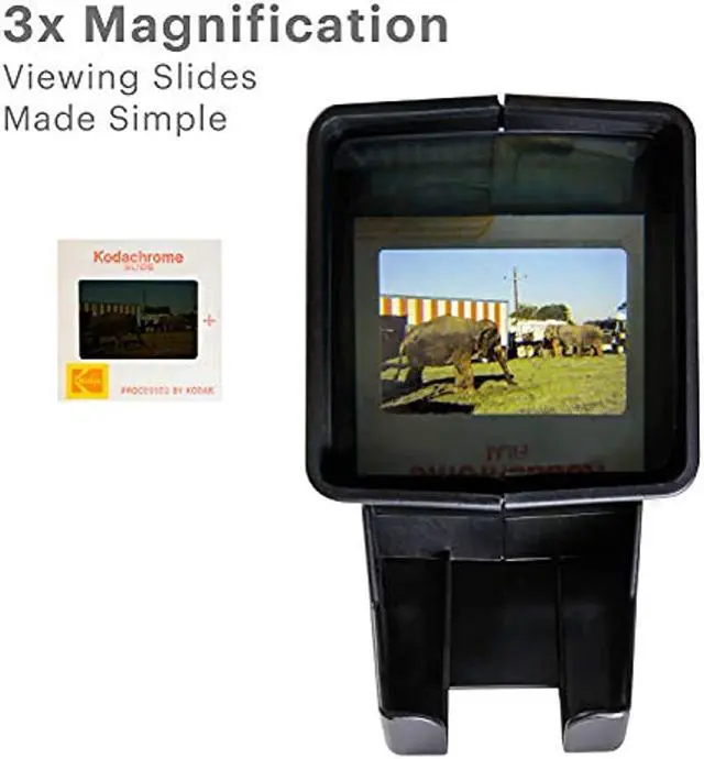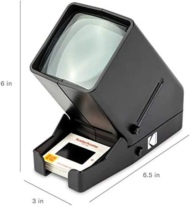 Built-in LED Light Box - Behind the generous glass viewing area are 4 Natural White 6000K bright daylight LED bulbs, which gently illuminate images for maximum clarity and contrast. It's perfect for viewing pictures anytime, anywhere. Make it Magnified - The trouble with old slides is that they are so small! Instead of squinting, users view the projected images with 3X magnification thanks an integrated lens. Photos appear bigger without losing sharpness or detail. Load-and-Look Ease - No more fumbling with multiple adapters or numerous machines for each film. View old vacation photos, family portraits or birthday snaps in an instant by loading them one by one via slide slot or film feeder.