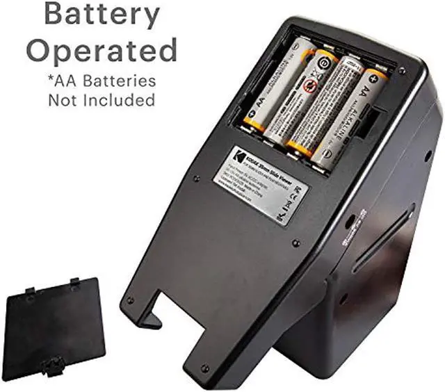 Two Ways to Power - Load 4 AA batteries into the designated space for hours and hours of enjoyment. If you purchase a standard 6V AC/DC adapter, you can also keep the device continuously powered for nonstop slide-viewing action. (Batteries and adapter are sold separately) 3X the Clarity - Enjoy old photos with never-before-seen detail thanks to the built-in lens' triple magnification powerIdeal Angle - The back-lit screen is positioned at an upward angle, so it's easy to view images without strainingAdapt to View - If you don't have a power source, use batteries to entertain friends and family at home or on the roadStress-Free Maintenance - Clean the lens with a soft, dry cloth; also, if storing for an extended period, be sure to remove batteriesLifelike Lighting - Images display without discoloration or wash-out with our specially selected 'daylight' LED bulbsLight & Compact - The unit is lightweight for carrying and compactly designed for storage, measuring just 6".