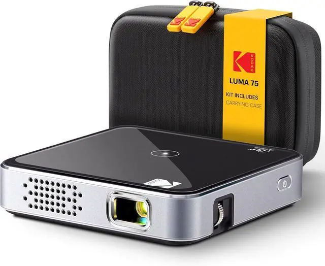 Bring big-screen entertainment anywhere with the Kodak Luma 75 Ultra Mini Pocket Projector, the ultimate portable projector for home, travel, and creative projects. This ultra-lightweight pico projector fits in the palm of your hand yet delivers surprisingly sharp and colorful images, supporting up to 1080p resolution on screens up to 100 inches. Its a perfect choice for cookie decorating, watching movies, projecting digital art, or sharing presentations on the go. With advanced DLP display technology and a long-lasting RGB LED light source rated for 30,000 hours, the Luma 75 delivers consistent 35 ANSI lumens brightnessideal for dark or low-light environments. Its native 640x360p resolution ensures clarity while remaining power-efficient and ultra-portable. Whether youre a baker using a cookie projector, a parent entertaining kids in a tent, or a traveler needing a mini movie theater in your hotel room, this HDMI mini projector gets the job done. Play your content directly from USB, HDMI, Micro SD, or 3.5mm audio sourcesno Wi-Fi or streaming apps required. The 2800mAh built-in battery gives you up to 1.5 hours of video playback on a single charge, with fast recharging via USB-C. Simple touch-button controls and tripod mounting compatibility make setup a breeze. Supports popular video formats including MP4, AVI, MOV, MKV, and image files like JPG, PNG, making it a great tool for slideshows, DIY art tracing, or mobile entertainment. The compact design and included carry case, USB-C cable, HDMI cable, and manual make it an ideal gift or travel companion. Discover the power of projection with the Kodak Luma 75your go-to mini projector for cookies, classrooms, campers, and creators.