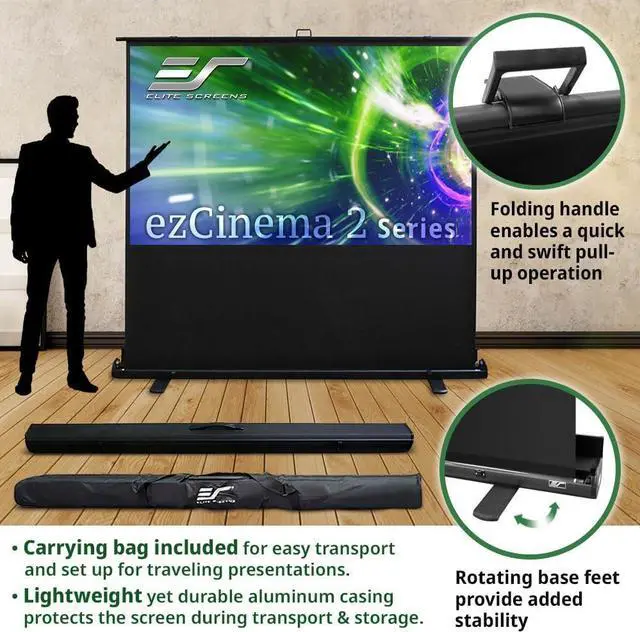 [Feature] : SCISSOR-BACKED permits screen to deploy and retract effortlessly. LIGHTWEIGHT ALUMINIUM CASING with CARRYING BAG included for easy transport and storage.