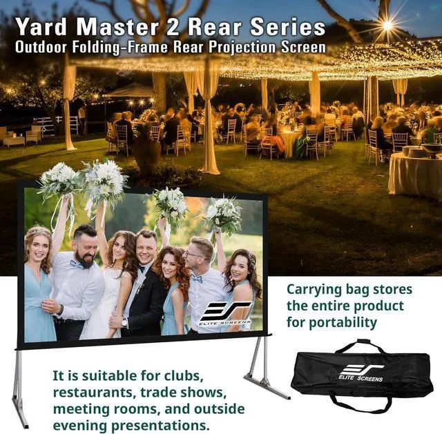 The Yard Master 2 is a folding-frame outdoor projection screen. Its light-weight aluminum frame allows it to be set up in minutes. Simply, unfold the frame; attach the material and legs, then project.