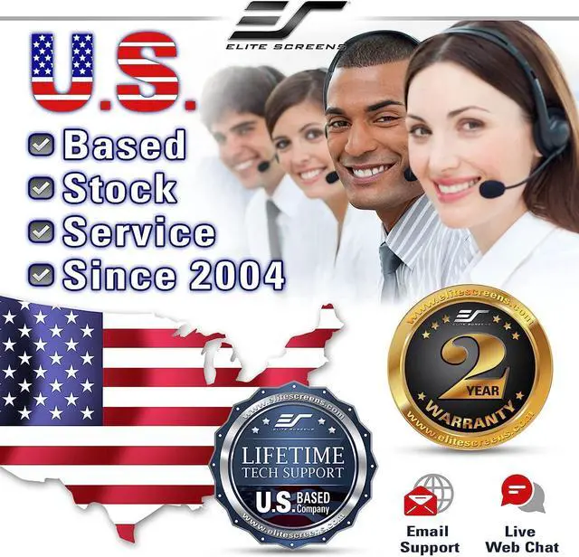 2-Year/3-Year ENR-G Manufacturer's Warranty by Elite Screens if purchased NEW, an ISO9001 manufacturer since 2004 and Lifetime Tech Support by Email or Phone Call by Elite Screens' Professional Service Team.