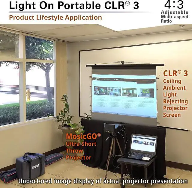 Optimized for Ultra Short Throw Projectors Designed exclusively for portable tabletop UST projectors, the micro-serriform optical structure filters out ambient light for 80x contrast improvement over matte white screens, ensuring sharp, shadow-free images even at close range.