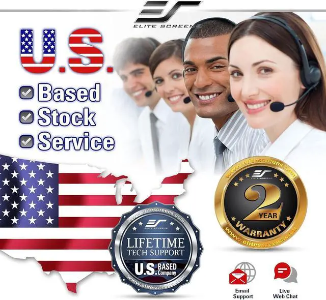 US Based Company Warranty: 2-Year/3-Year ENR-G Manufacturer's Warranty by Elite Screens if purchased NEW, an ISO9001 manufacturer since 2004 and Lifetime Tech Support by Email or Phone Call by Elite Screens' Professional Service Team.