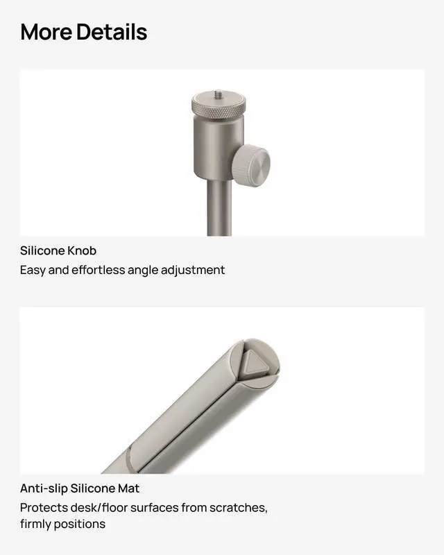 Universal Compatibility: Designed with a 1/4-inch screw, it accommodates a variety of devices. Fine-tune with the silicone knob and rest easy with an anti-slip mat safeguarding your surfaces.