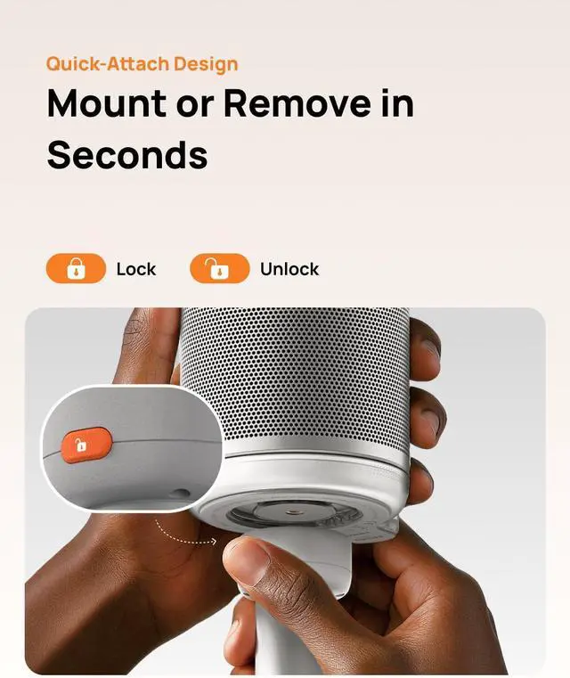 Quick-Attach Design: Effortlessly mount or remove the projector in seconds with the stands release button .