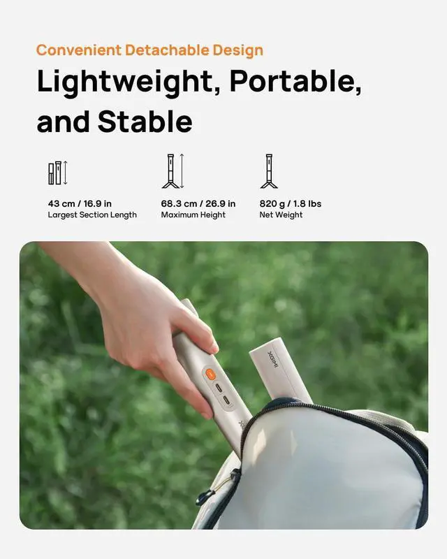 Lightweight, Portable, and Stable: Designed for easy transport, the stand separates into two compact pieces, fitting effortlessly into a backpack. When its movie time, reassemble with a simple twistits sturdy aluminum alloy build ensures rock-solid stability.