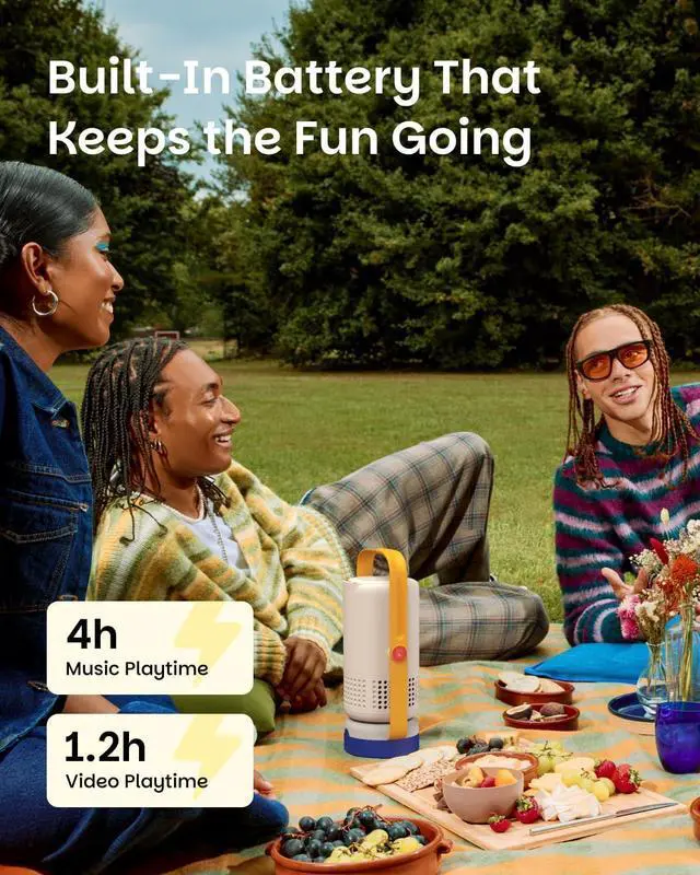 Built-In Battery That Keeps the Fun Going: With up to 1.2 hours of video playtime and 4 hours of music playtime on a single charge, Vibe One (Battery Powered) goes wherever you do. Seamlessly hop from room to room, or take it outdoors without worrying about a power supply.