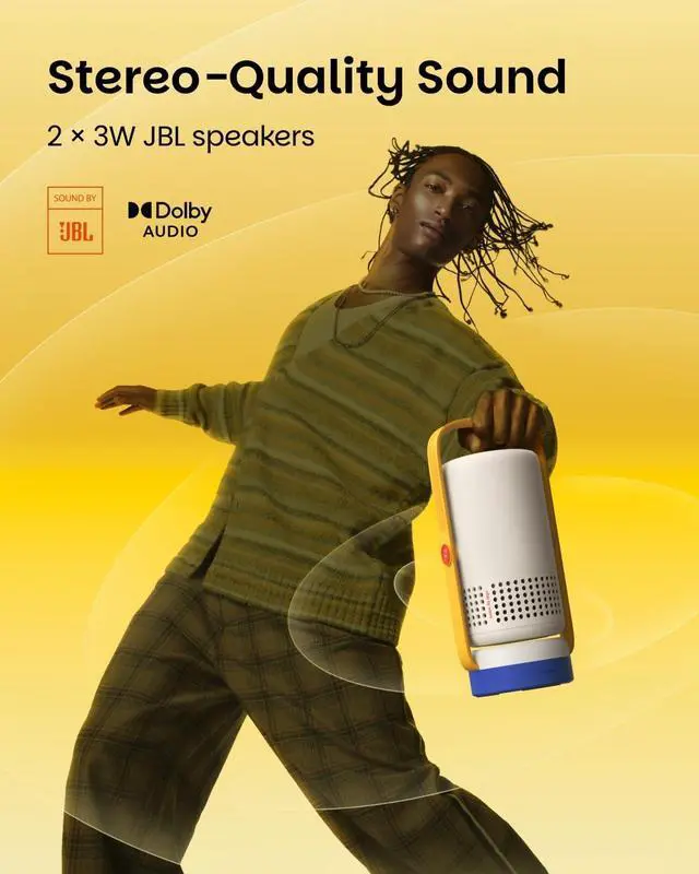 • All-in-One Vibe Creator: More than just a smart portable projeector-dual 3W speakers powerfully play your favorite tunes, while Ambient LightMode sets the perfect mood.