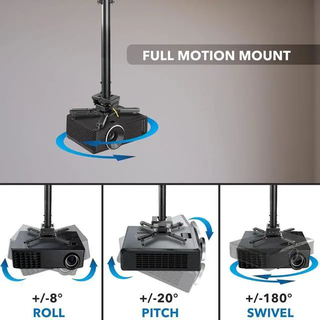 Heavy-Duty Projector Ceiling Mount with Adjustable Pole Universal Fit Perfect Angles Quick Release Durable Design
