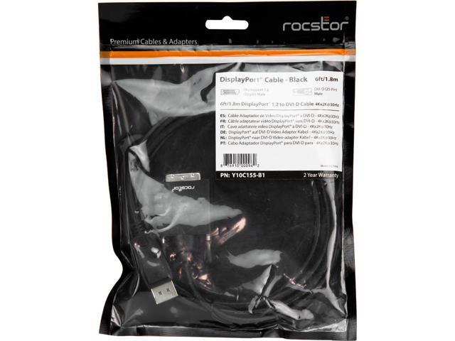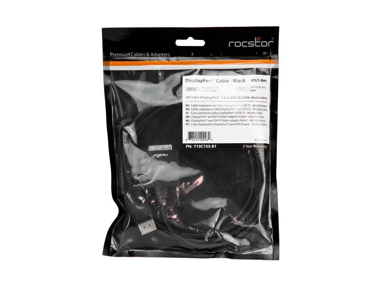 Rocstor Y10C155-B1 6Ft Displayport To Dvi-D Cable Supports 4Kx2K 30Hz M/M