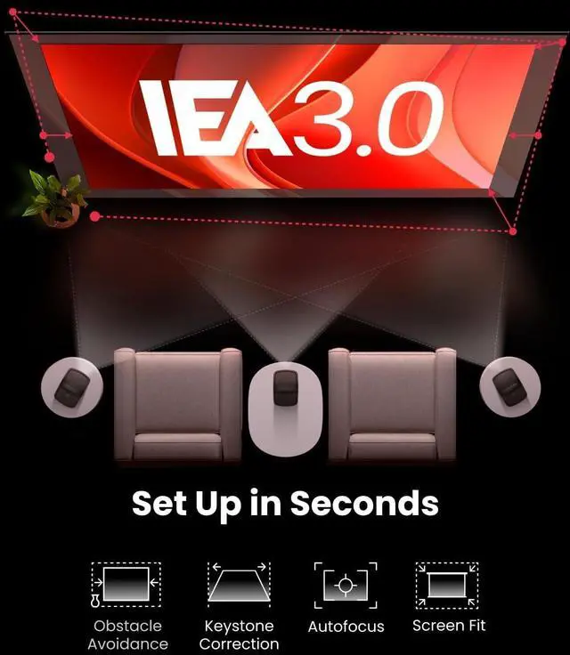 Set Up in Seconds: Our Intelligent Environment Adaptation Technology performs auto keystone correction, autofocus, keystone correction and obstacle avoidance in just 3 seconds.
