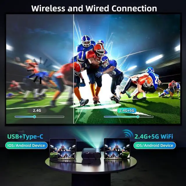 [Versatile Connectivity] Our projector offers multiple connectivity options, including HDMI, USB and audio inputs, as well as supports for a variety of devices such as laptops, smartphones, gaming consoles, tv sticks, USB stick and more. This makes it easy to connect to your device and display your favorite content.