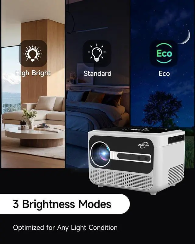 Incredibly Compact, Incredibly PowerfulThe home projector is compact, measuring only 8.27 x 6.5 x 5.9 inches and weighing just 3.9 pounds. Equipped with side-mount, ceiling-mount, and 100%-50% zoom capabilities, it allows for seamless screen size adjustments without moving the projector. Whether it's a movie night in the living room, binge-watching in bed, or an outdoor camping adventure, enjoy a seamless large-screen experience anytime, anywhere.