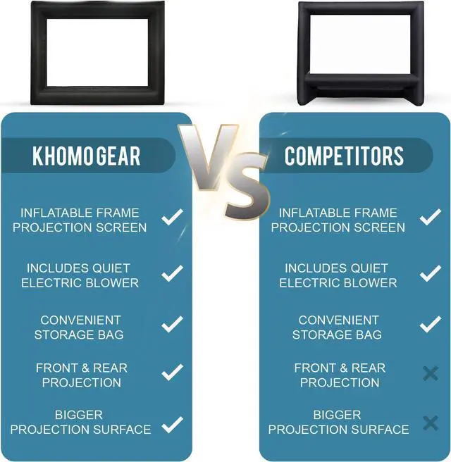 Large Viewing Area: Features a 13-foot by 8-foot screen with a 16:9 aspect ratio, providing a wide display area for outdoor movies. Offers a more spacious viewing experience compared to many standard outdoor inflatable projector screens.