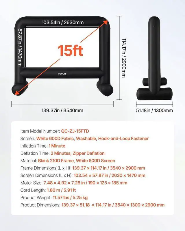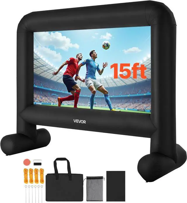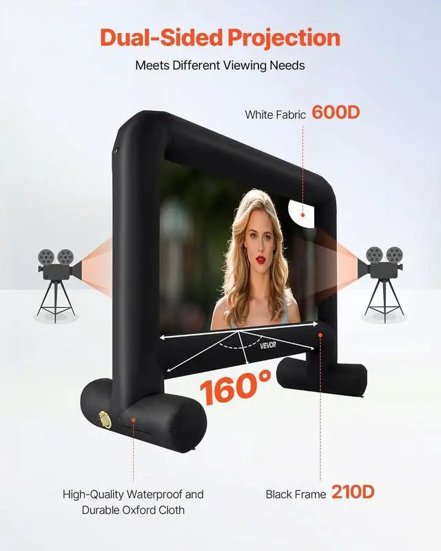 High-quality Material: This inflatable projector screen for outside uses high-quality Oxford fabric, which can resist creases and is easy to clean, ensuring clear, high-resolution images every time. The screen size is 8.62 x 4.82 ft. Front and rear projection are available with an aspect ratio of 16:9
