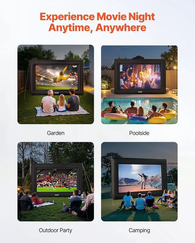 Expansive Viewing Angle: With its wide-angle design, our inflatable screen allows multiple people to enjoy movie nights simultaneously. No matter where you sit, you can easily enjoy a wide viewing angle, immersing yourself in a comprehensive audio-visual experience!