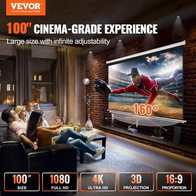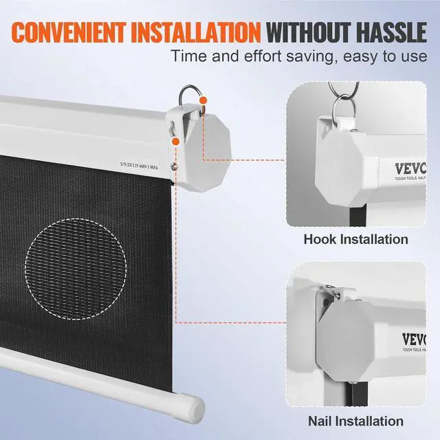 High Quality Image: VEVOR manual pull down projector screen is crafted from high-reflectivity PVC material, ensuring every detail shines through and delivering a flawless large-screen viewing experience in any setting. Get ready to immerse yourself in a visual masterpiece