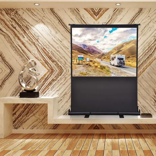 [Widely Applicable]: Floor Projector Screen is ideal for indoor and outdoor use such as home theater, outdoor garden viewing, trade fair, meeting room and more to provide quality viewing wherever you are convenient. Perfect for working remotely, small group meetings, portable presentations, travel movies, small venue speaking or presentation, exhibitions display, camping or RV movie night, etc.