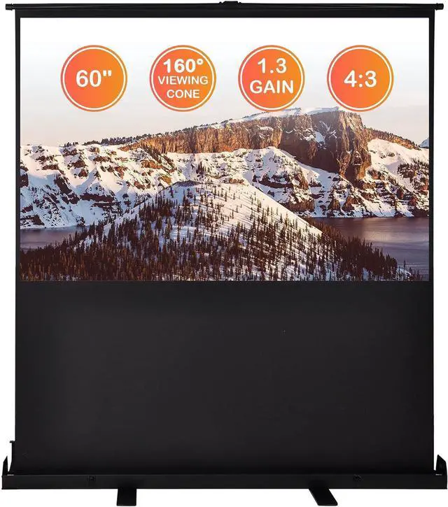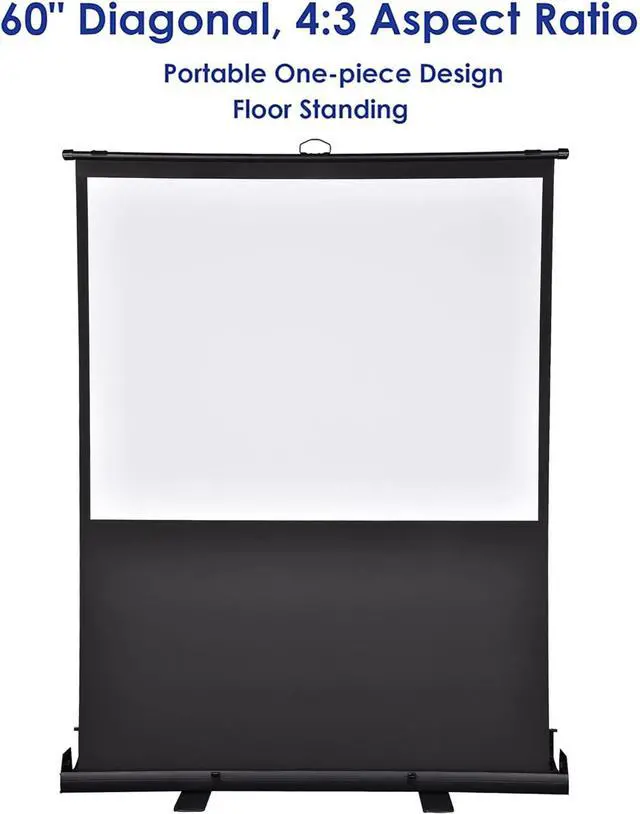 [Portable Design]: 60" Pull Up Floor Projector Screen features a one-piece design and can be retracted fully into the case, ensuring easy storage, transport and perfect working synergy with handheld projectors for playing video presentations on-the-go